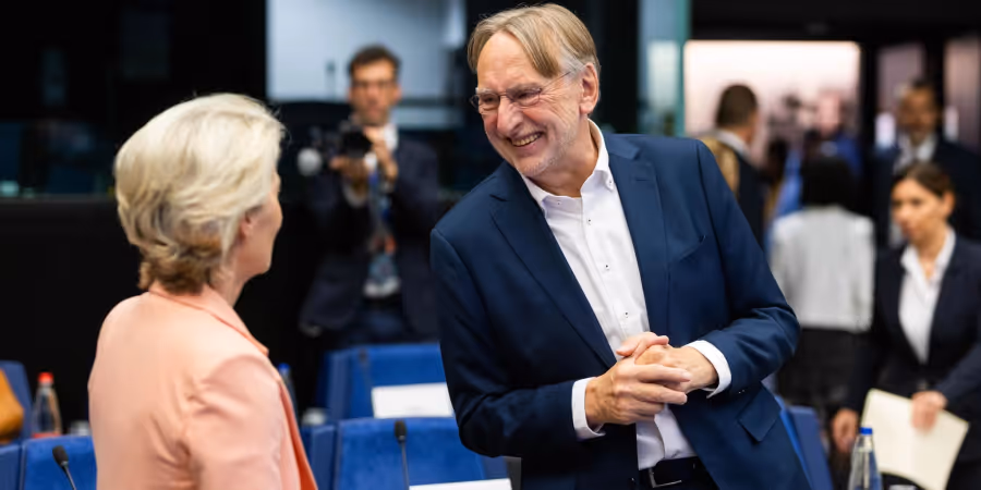 So habe er gehört, dass der Kabinettschef von EU-Kommissionspräsidentin Ursula von der Leyen in Washington gewesen sei. Zudem treffe sich von der Leyen selbst mit dem US-Vizepräsident J.D. Vance.