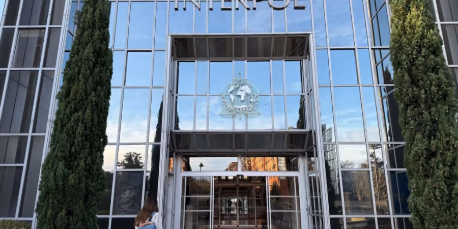PRODUKTION - Eine Person läuft auf den Sitz von Interpol in Lyon zu. Interpol ist die weltgrößte Polizeiorganisation. Foto: Rachel Sommer/dpa - Keystone/dpa/Rachel Sommer