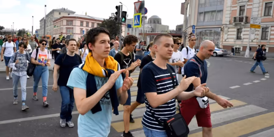 Dabei verlief die Demonstration weitgehend friedlich. Die Polizei, die für ihr gewaltsames Vorgehen in den letzten Wochen scharf kritisiert worden war, forderte die Demonstranten lediglich dazu auf, die Strasse zu verlassen und ihren Marsch auf den Bürgersteigen fortzusetzen. Die Moskauer Justiz hatte Demonstranten gewarnt, sie müssten die «Verantwortung tragen», wenn sie trotz des Verbots auf die Strasse gehen.