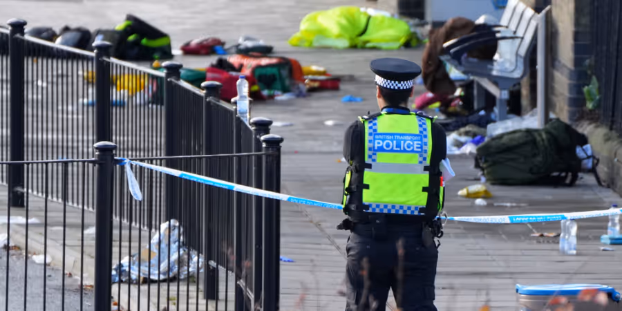 Der British Transport Police zufolge war er dort auch in den Zug gestiegen, am Tatort wurde ein Messer sichergestellt. «Spezialisierte Ermittler untersuchen den Hintergrund des Verdächtigen, den wir in Gewahrsam haben, sowie die Ereignisse, die zu dem Angriff geführt haben», sagte Deputy Chief Constable Stuart Cundy.
