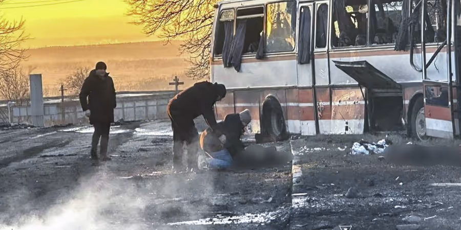 Bei einem russischen Drohnenangriff auf die zentralukrainische Stadt Pawlohrad sind nach offiziellen Angaben mindestens 15 Menschen getötet worden. Weitere sieben Personen seien verletzt worden, teilte die Minenleitung DTEK auf Telegram mit. Nach ersten Berichten ukrainischer Medien traf eine russische Kampfdrohne einen mit Grubenarbeitern besetzten Bus. Die Kumpel waren nach Angaben von DTEK nach dem Schichtwechsel auf dem Heimweg. Weitere Drohnen schlugen auf dem Gelände des Kohle-Bergbaus ein.