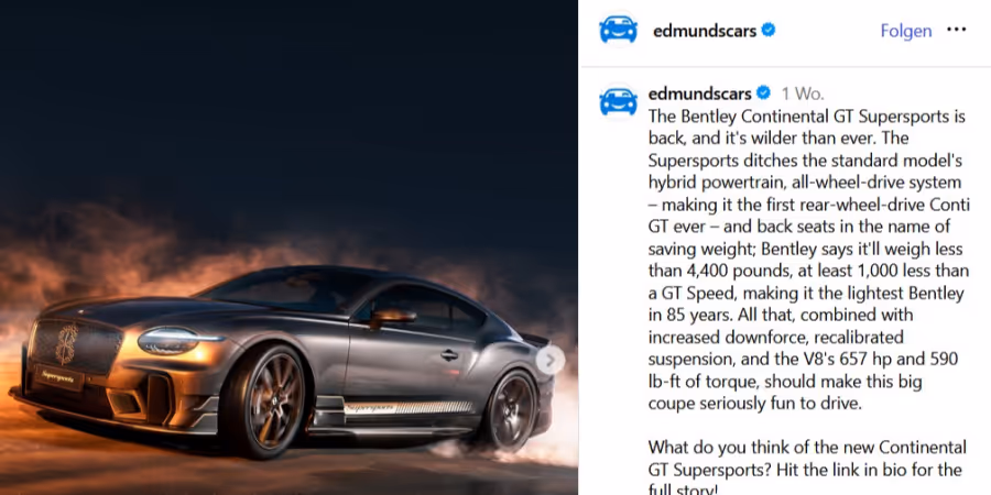 Die Produktion des Bentley Supersports ist streng limitiert auf nur 500 Exemplare weltweit mit Produktionsstart im Frühjahr 2026. Laut «MeinAuto» werden erste Preisschätzungen bei rund 326'000 Franken liegen.