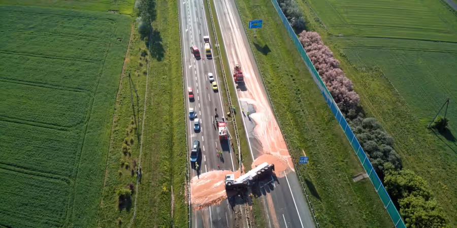 Polnische Autobahn nach Lkw-Unfall in Schokolade getaucht