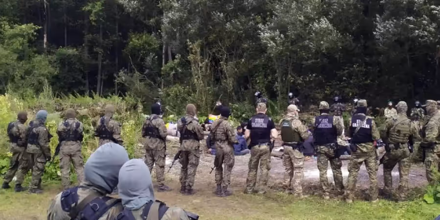 Rund 15 000 polnische Soldaten bewachen dem Verteidigungsministerium zufolge die östliche EU-Aussengrenze zu Belarus. Sie seien im Einsatz, um Polen vor einem hybriden Angriff zu schützen, schrieb das Ministerium am Freitag bei Twitter.