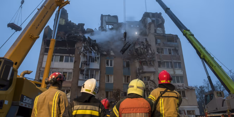 In der westukrainischen Grossstadt Ternopil ist die Zahl der Toten nach einem russischen Raketenangriff am Mittwoch auf 31 gestiegen. Es seien die Leichen einer Mutter und ihrer zwei kleinen Kinder aus den Trümmern eines Wohnhauses geborgen worden.