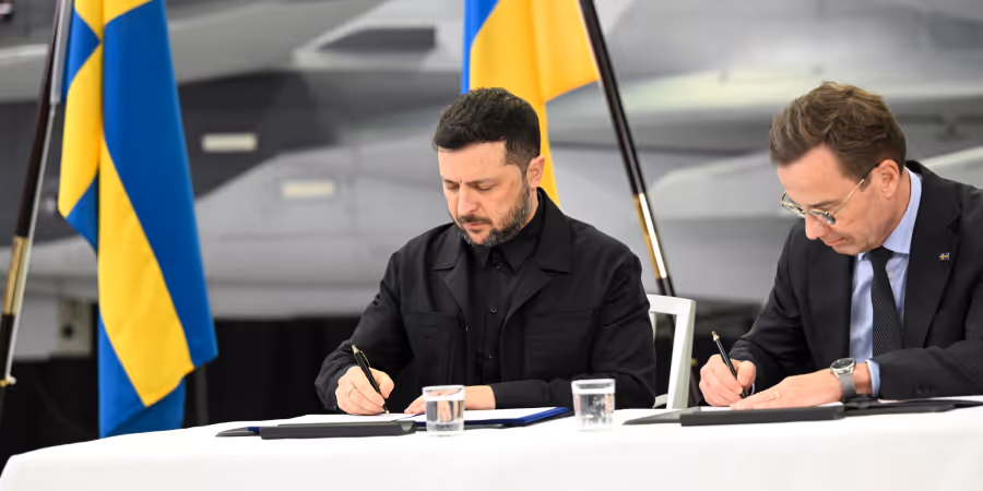 Die beiden unterzeichneten dazu beim Gripen-Produzenten Saab eine Absichtserklärung, die nach Selenskyjs Angaben den Weg hin zu einer Kampfjet-Flotte schwedischer Bauart für sein Land ebnen soll. Kristersson betonte, dass es sich dabei nicht um neue Spenden handle, sondern um eine langfristige industrielle Zusammenarbeit zwischen den Ländern.