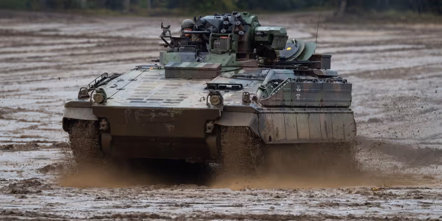 Ein Schützenpanzer der Bundeswehr vom Typ Marder während einer Übung in Niedersachsen. - Philipp Schulze/dpa
