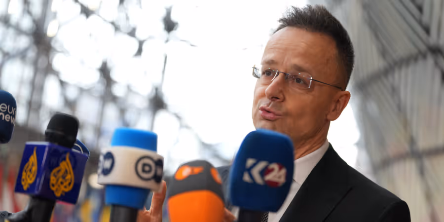 Auch das vorgesehene 20. Sanktionspaket gegen Russland werde Budapest blockieren, sagte Szijjarto in einem auf seiner Facebook-Seite veröffentlichten Video, das während des Flugs zum Treffen der EU-Aussenminister in Brüssel entstand.