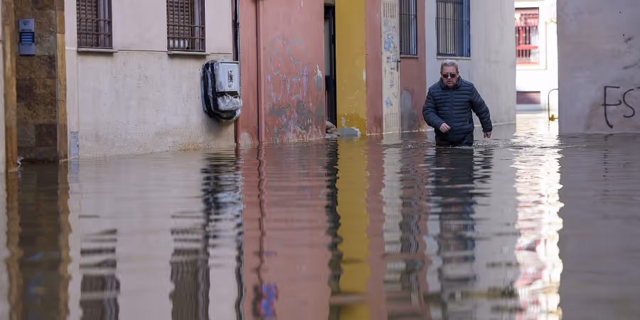 In Spanien mussten rund 11'000 Menschen nach dem Unwetter evakuiert werden, meldet die «taz». Grosse Flüsse wie der Guadalete und der Guadalquivir sind über ihre Ufer getreten.
