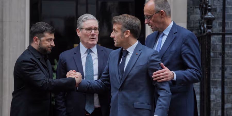 Nach Gesprächen über den aktuellen Stand der Friedensbemühungen, die er am Montag in London mit Bundeskanzler Friedrich Merz (CDU), dem britischen Premierminister Keir Starmer und Frankreichs Präsident Emmanuel Macron führte, flog Selenskyj direkt nach Brüssel weiter. Dort informierte er Nato-Generalsekretär Mark Rutte, den Präsidenten des Europäischen Rates, António Costa, und EU-Kommissionspräsidentin Ursula von der Leyen über den Stand der Gespräche mit den USA zu einer möglichen Friedenslösung.