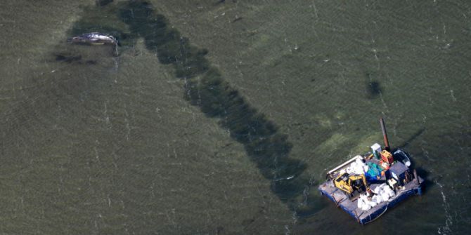 Warten auf Transportkahn - oder schwimmt der Wal selbst los?