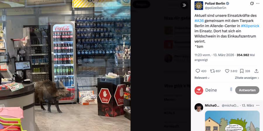Wildschwein verirrt sich in Berliner Einkaufszentrum
