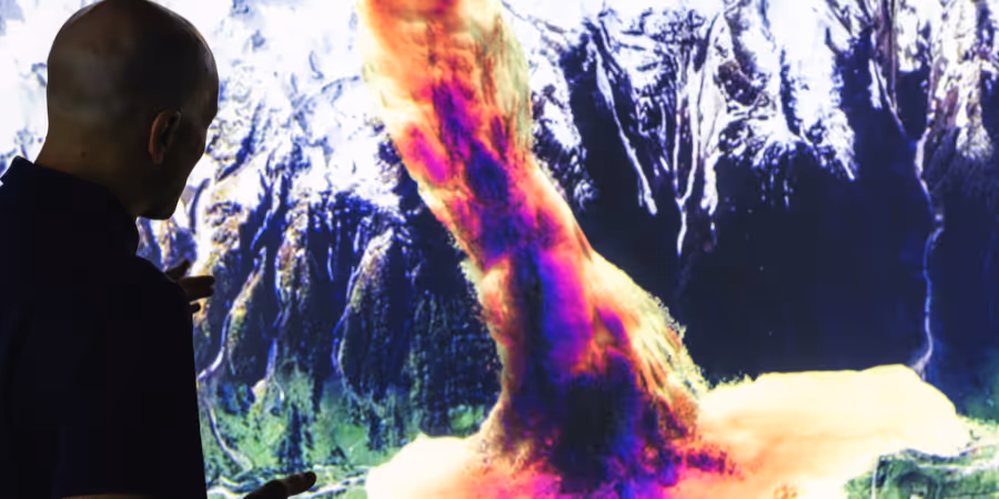 Diese Wellen bedrohen wiederum Wanderwege oder andere Infrastrukturen in der Umgebung. Mit dem 3D-Modell lässt sich ein solches Szenario realistisch vorhersagen und untersuchen.