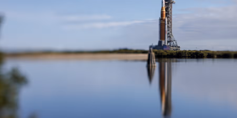 Mithilfe einer Art Transportwagen wurde das rund 100 Meter hohe System – bestehend aus der Rakete «Space Launch System» und der «Orion»-Kapsel – aus der Werkshalle auf dem Weltraumbahnhof Cape Canaveral herausgefahren und bei einer rund zwölfstündigen Aktion langsam die etwa sechs Kilometer bis zum Startplatz gebracht.