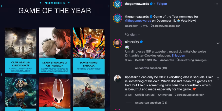 Clair Obscur: Expedition 33 holt den Titel Game of the Year bei den Game Awards 2025. Die Gala am 11. Dezember zeichnete Top-Spiele und Stars aus.