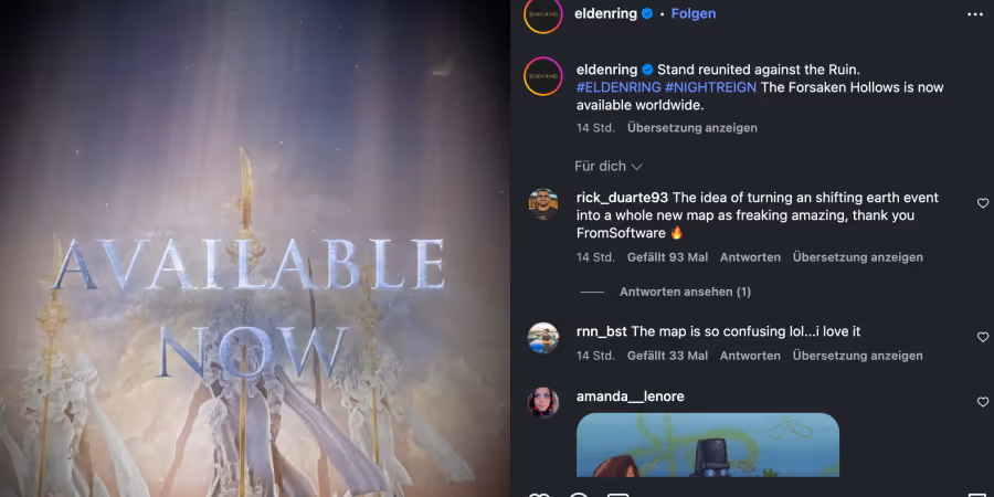 Zudem erwartet Spieler zwei neue Bosse, darunter ein bekannter Krieger aus dem Vorgängerspiel. Ausserdem gibt es eine komplett neue Umgebung: «The Great Hollow», ein düsterer Bereich mit Ruinen, Türmen und verfluchten Kristallen.