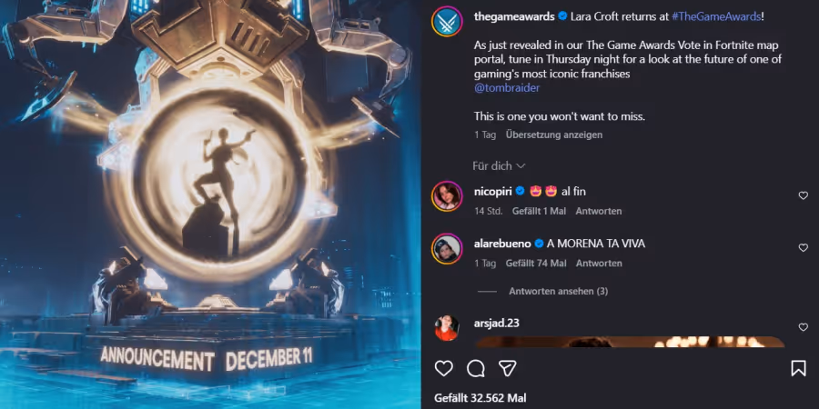 Geoff Keighley kündigte die Enthüllung in Fortnite an. Das offizielle Tomb Raider-Team bestätigte den Auftritt, meldet «Playfront».