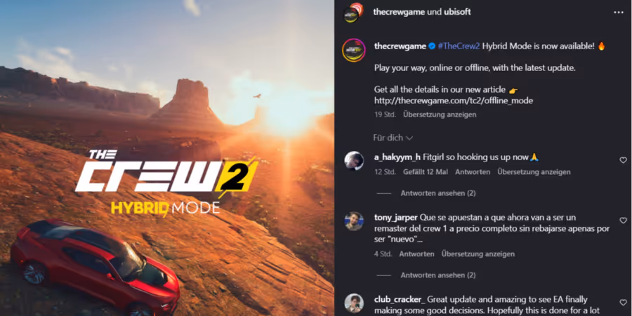 Dank eines neuen Hybrid Modes kann The Crew 2 nun auch offline gezockt werden. Das Update folgt auf Kritik aus der Community.