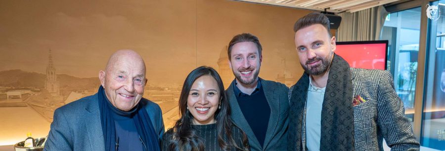 Rudolf Beyeler (Rudolf Beyeler Architekten), Wincel Kaufmann (Bluecolab), Miro Emch (Mobiliar) und Christian Anders (Lifestyle Company AG). - Daniel Zaugg
