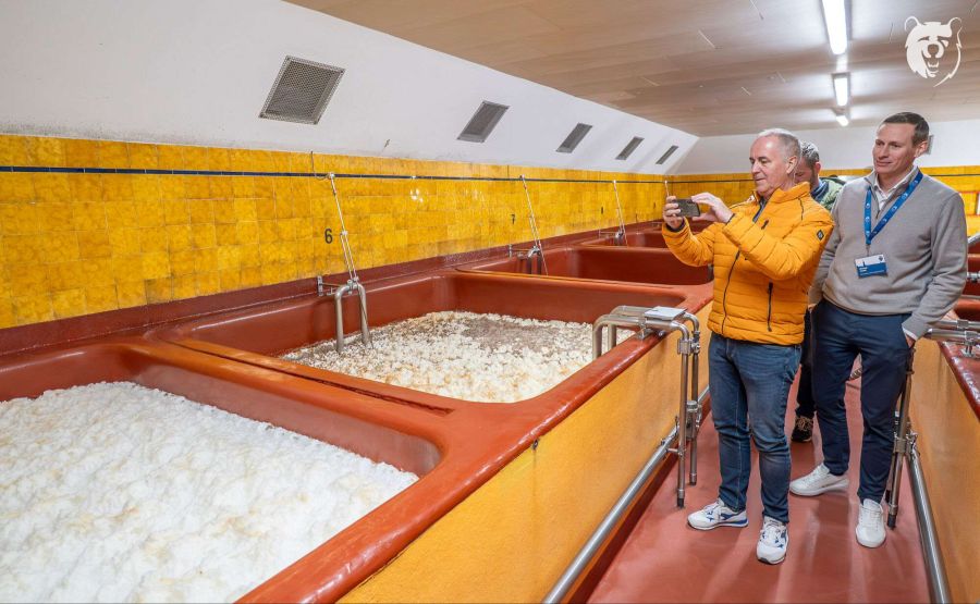 Abgefüllt wird es anschliessend in die typisch braunen Bügelflaschen, deren Bügel übrigens bei neuen Flaschen nach wie vor hier vor Ort von Hand angebracht werden. «Wer jeweils Zeit hat, ‹bügelt› ein bisschen!», meinte Verkaufsleiter Philipp Burkhalter mit einem Augenzwinkern.