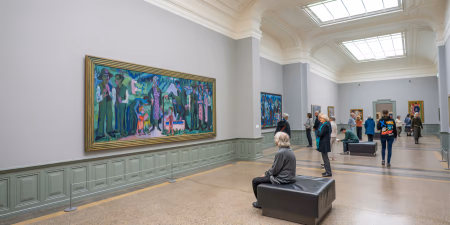 Gleich gegenüber ist das Porträt von Erna Schilling platziert. Die Berliner Tänzerin spielte eine zentrale Rolle in Kirchners Leben und Wirken: Sie war seine Gefährtin, Verwalterin seiner Geschäfte, Helferin in gesundheitlichen Krisen und Organisatorin seines Alltags.
