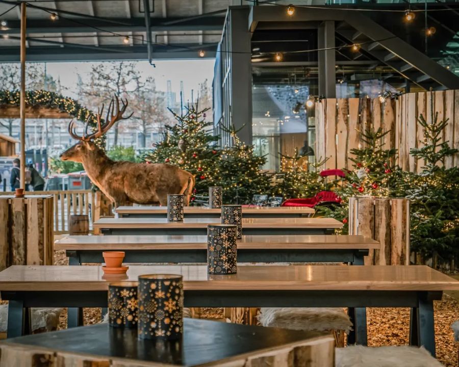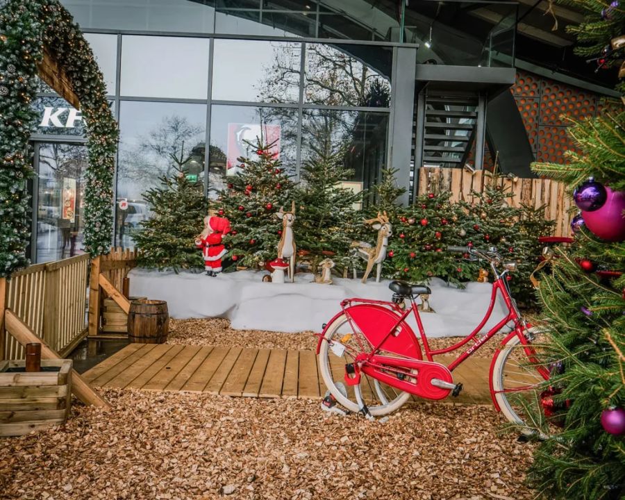 Machen Sie einen Spaziergang in unserem verschneiten Weihnachtswald und entdecken Sie Hirsche, Eichhörnchen und womöglich die Shoppy-Ente.