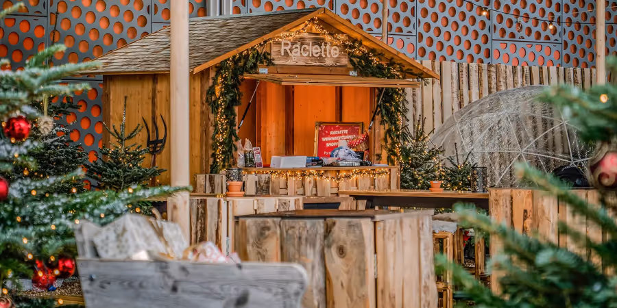 Machen Sie mal eine Shopping-Pause und geniessen Sie ein feines Raclette und Crêpe in rustikal-weihnachtlicher Atmosphäre.
