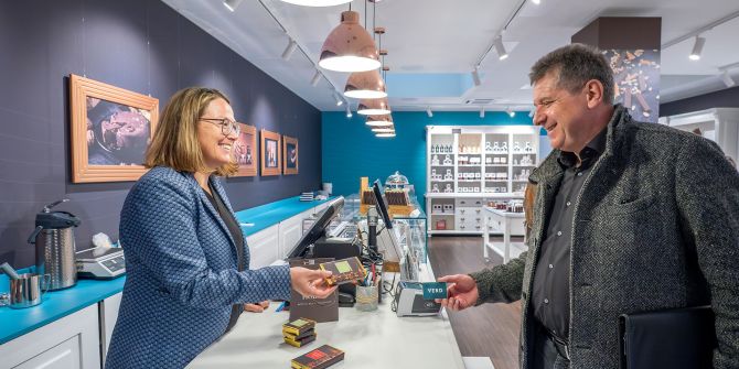 Jeden Mittwoch steht Eva Werlen im Laden an der Kramgasse– unterstützt die Mitarbeitenden, trifft Geschäftspartner und tauscht sich mit Kundinnen und Kunden aus.