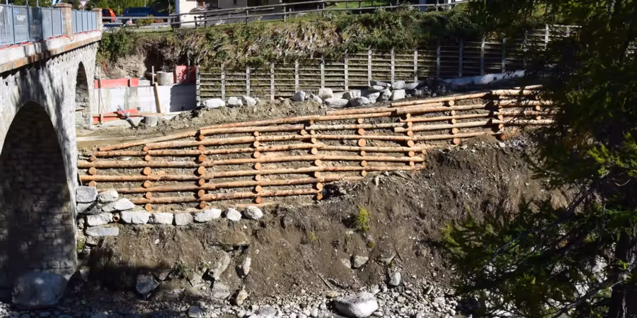 Auf einer Baustelle in Pontersina wurden am Montag mit einem Bagger Befestigungsarbeiten an einem Bachufer ausgeführt. Um 13.15 Uhr wollte der Baggerführer sein Arbeitsgerät drehen.