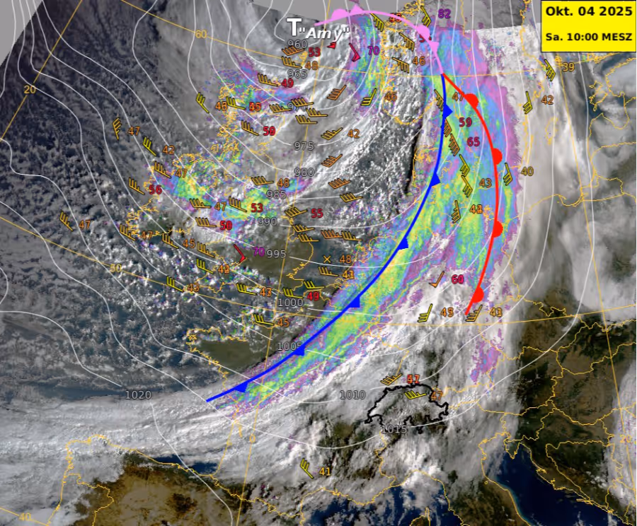 - Das Orkantief «Amy» bringt Sturm und Regen in die Schweiz.