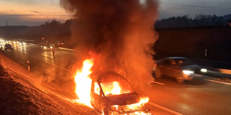 Auf der Autobahn A7 bei Wigoltingen TG ist am Donnerstagabend ein Auto komplett ausgebrannt. Die Feuerwehr löschte den Brand. Verletzt wurde gemäss der Polizei niemand.