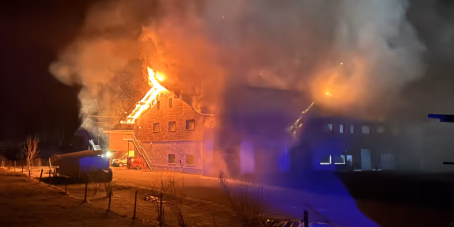 Die Einsatzkräfte konnten verhindern, dass das Feuer auf umliegende Gebäude übergriff. Durch die Hitzeentwicklung entstand bei der angrenzenden Schreinerei Sachschaden.