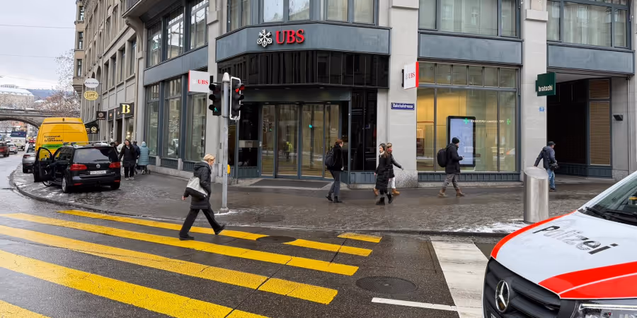 - Im Zentrum steht die UBS-Filiale in der Nähe des Parkhaus Urania in Zürich.