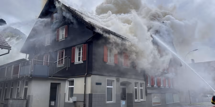 Wegen eines Blitzeinschlags ist am Sonntagnachmittag ein Dachstock eines Mehrfamilienhauses in Muotathal SZ in Brand geraten. Weil die Rauchentwicklung derart stark war, warnten die Behörden die Bevölkerung, Fenster und Türen zu schliessen.