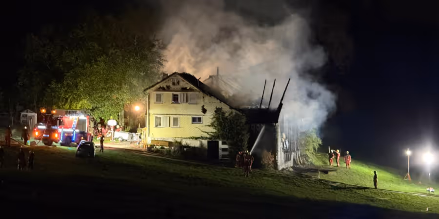 Auch im Innern des Wohnbereichs waren Flammen sichtbar, die bald aus dem Dach schlugen. In der Folge brannte die Liegenschaft vollständig aus.