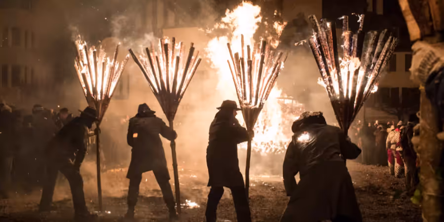 Es ist das erste Mal, dass der Chienbäse-Umzug wegen starkem Wind ohne die grossen Feuerwagen stattfinden musste.