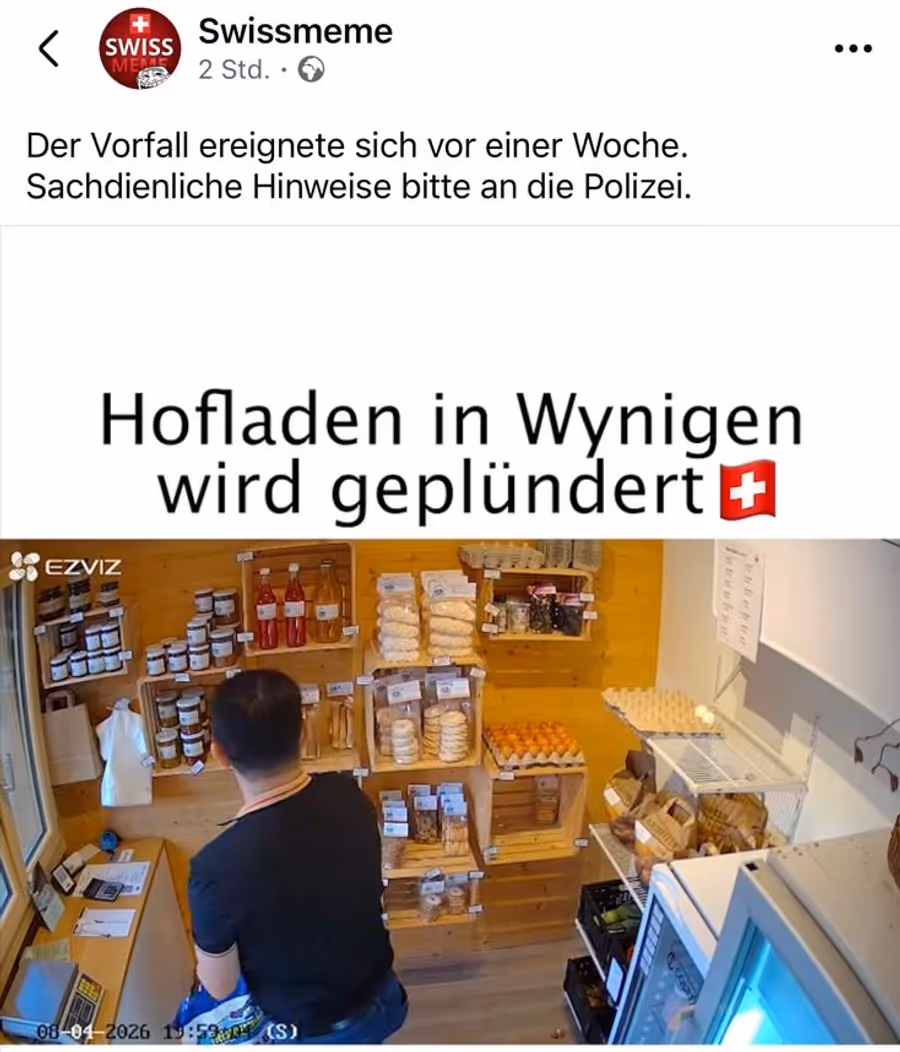 Auf Social Media sorgt derzeit ein Video aus Wynigen BE für Aufsehen. Es zeigt, wie ein Mann und eine Frau einen Hofladen ausräumen – und mit der Ware verschwinden.