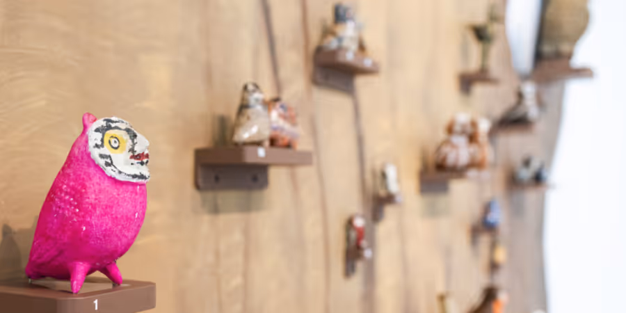 Namensgeberin und Aushängeschild der Ausstellung ist eine pinke Flöte aus Mexiko in Form einer Eule. «Wir wissen nicht, wer sie herstellte, doch diese Person entschied sich bewusst für die Farbe», sagte Kuratorin Florence Roth am Donnerstag vor den Medien. Mit ihrer ungewohnten Farbe solle die Eule dazu anregen, die eigene Wahrnehmung zu hinterfragen.