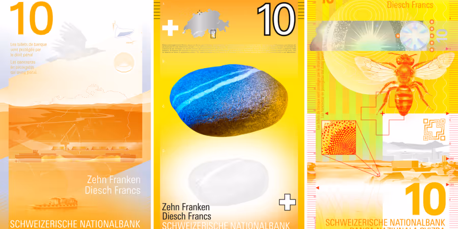 Die Schweizerische Nationalbank (SNB) hat sechs Finalisten für den Gestaltungswettbewerb der neuen Banknotenserie ausgewählt. Damit geht die Auswahl des neuen Bargeld-Designs in die nächste Runde.