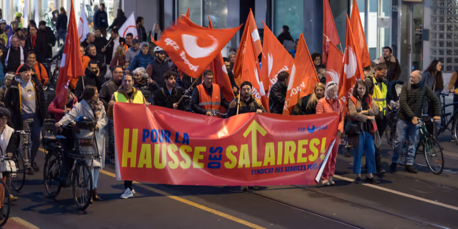 In Genf gingen rund tausend Menschen gegen die geplanten Sparmassnahmen auf die Strasse. Mitte November könnte es zum Streik kommen.