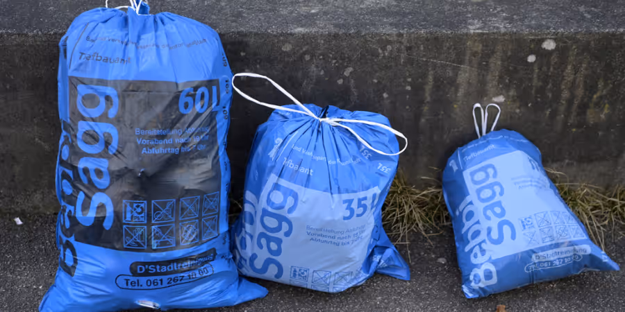 Das Entsorgen von Haushaltsabfall wird ab dem 1. Januar 2026 für Baslerinnen und Basler teurer. Neu kostet der 35-Liter-Bebbi-Sack 2,70 Franken statt wie bisher 2,30 Franken. Auch die Sperrgutvignetten kosten künftig mehr.