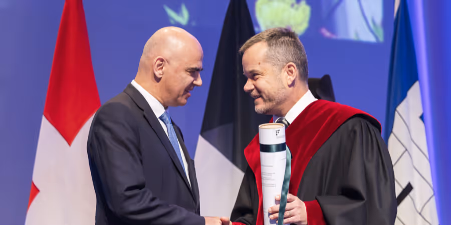 Berset wurde für seine engen Verbindungen zu den Naturwissenschaften und der Medizin während der Covid-19-Pandemie ausgezeichnet, wie die Universität Freiburg anlässlich des Dies academicus mitteilte. Der ehemalige Gesundheitsminister habe eine solide und konstruktive Zusammenarbeit zwischen Politik und Forschung gefördert, hiess es zur Begründung.