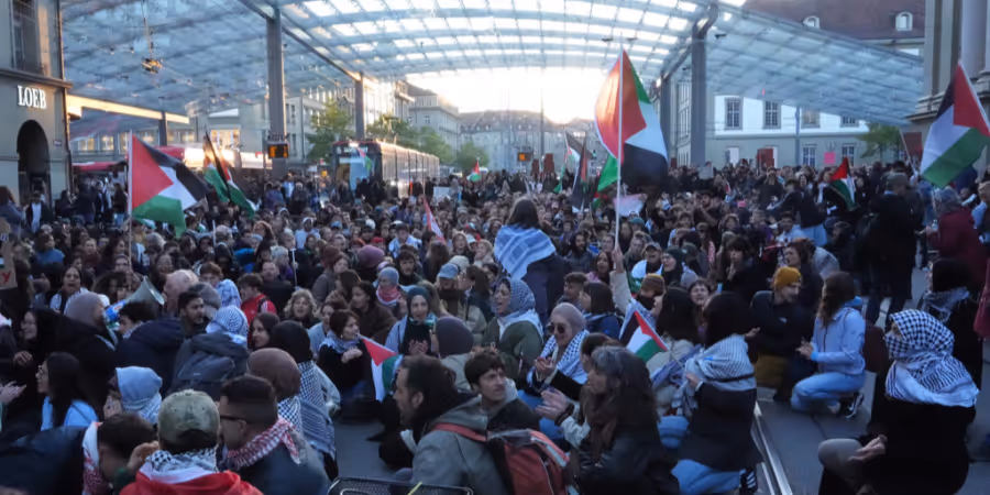 Einige Hundert Personen haben sich am Donnerstagabend in Bern zu einer Spontankundgebung gegen das Aufbringen der Gaza-Hilfsflottille versammelt.