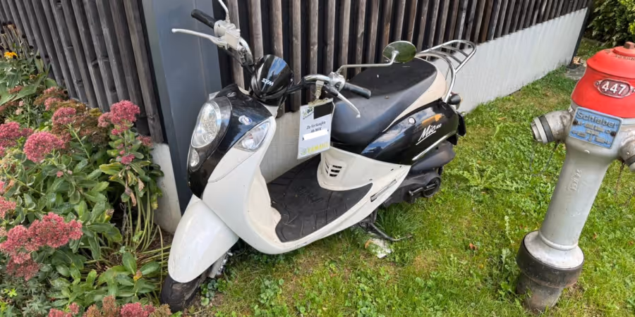 - Ein schwarz-weisser Roller steht seit Monaten unverkauft in Thun BE am Strassenrand.
