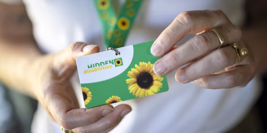 Die Flughafen Zürich AG führt gemeinsam mit Partnerunternehmen den grünen Umhängebändel mit Sonnenblumenmotiv für Reisende mit unsichtbaren Behinderungen ein. Damit können diese auf besonderen Rücksicht- oder Zeitbedarf hinweisen.