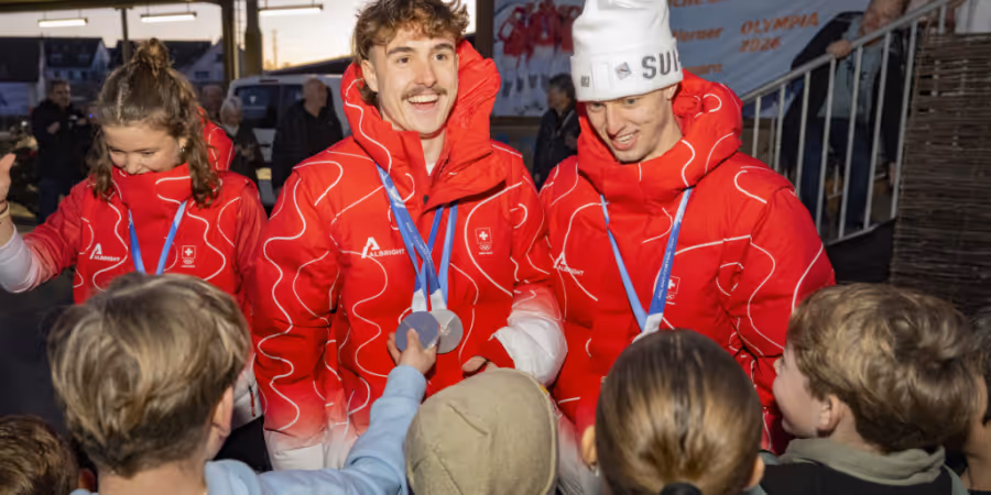 Das an den Olympischen Spielen Mailand-Cortina erfolgreiche Schweizer Freestyle-Ski-Team ist am Mittwochabend gefeiert worden. Noé Roth, Pirmin Werner und Lina Kozomara wurden in Mettmenstetten im Kanton Zürich begeistert empfangen.