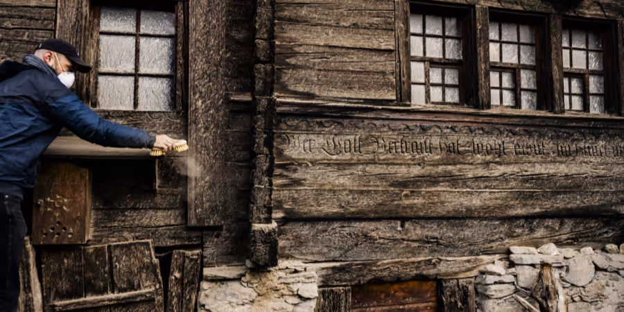 Die Gebäude, darunter rund 80 historische Bauten, sind im Bundesinventar schützenswerter Ortsbilder von nationaler Bedeutung aufgeführt. Die Reinigung war entsprechend heikel: Hochdruckreiniger waren tabu – zu gross wäre die Gefahr, die jahrhundertealten Holzfassaden zu beschädigen. Stattdessen rückten die Helfer mit Bürsten, Spachteln und viel Geduld an.