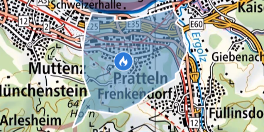 Alert Swiss warnt vor starker Rauchentwicklung infolge eines Lastwagenbrandes bei Pratteln. - alertswiss