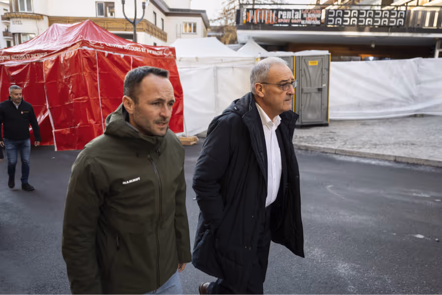 Dies zusammen mit dem Walliser Staatsratspräsidenten Mathias Reynard, Staatsrat Stéphane Ganzer, Generalstaatsanwältin Beatrice Pilloud, Polizeikommandant Frédéric Gisler und dem Gemeindepräsidenten von Crans-Montana, Nicolas Féraud.