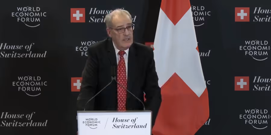 Um 17.30 Uhr trat Bundespräsident Guy Parmelin in Davos vor die Medien und zog Bilanz zum WEF-Tag. Dabei äussert er sich auch zur heutigen Rede von US-Präsident Donald Trump.